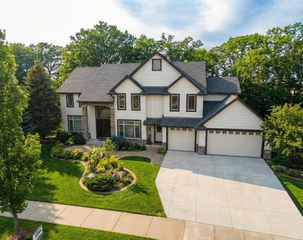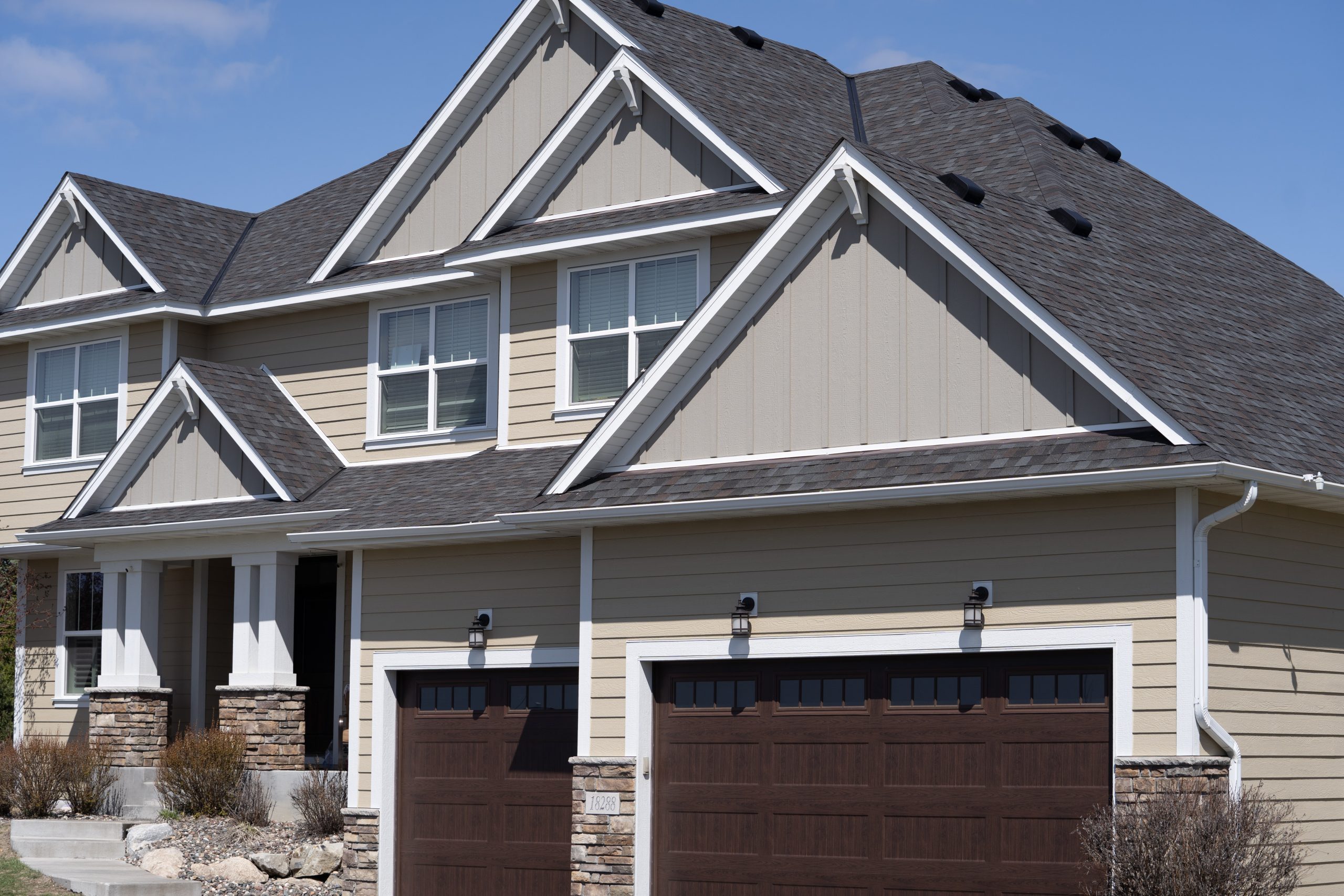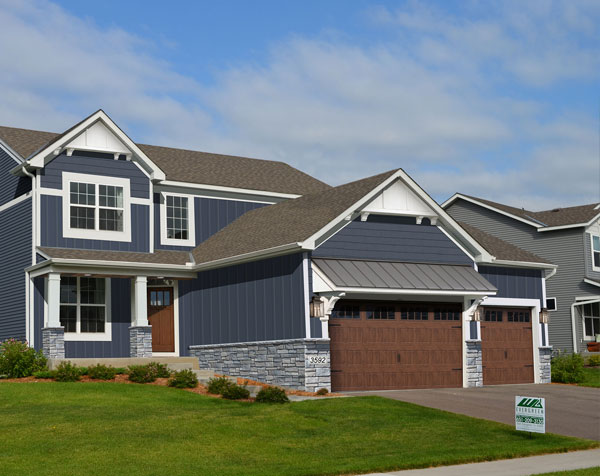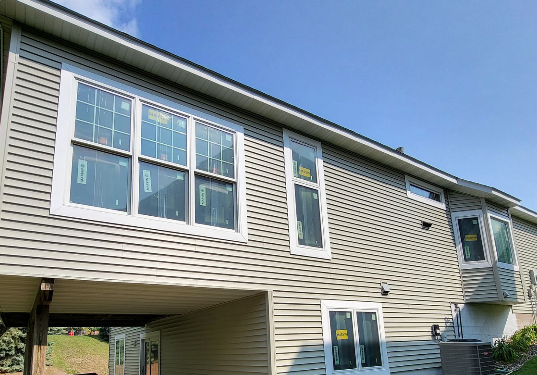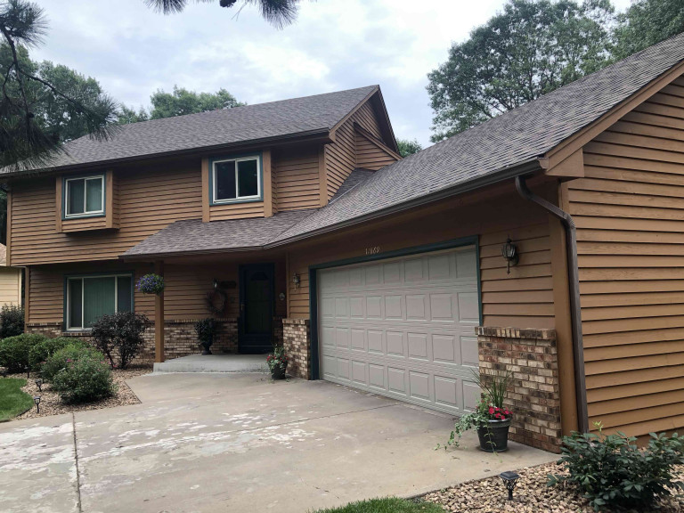 Evergreen Construction transformed this Maple Grove home with a full siding replacement after hail damage. Initially approved for only partial coverage, we worked with the insurance company to secure full replacement. The project features Mastic Carvedwood vinyl siding in Woodland Retreat with color-matched downspouts for a seamless, modern look.